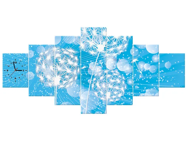 ZP4991A_3V Obraz s hodinami Púpavy na abstraktnom modrom pozadí |