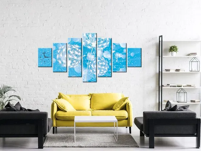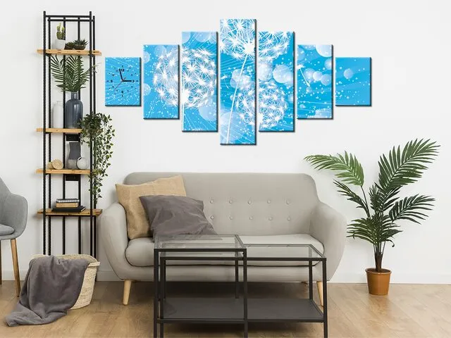 Úvod » Obrazy » Obrazy s hodinami » Obraz s hodinami Púpavy na abstraktnom modrom pozadí