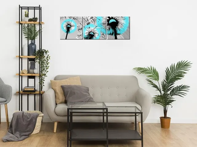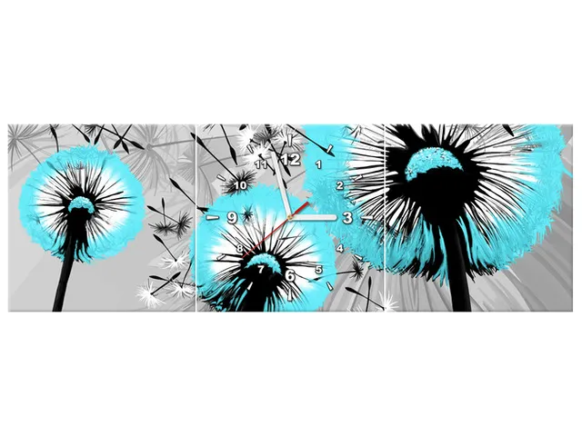 Úvod » Obrazy » Obrazy s hodinami » Obraz s hodinami Púpavy v jemnej tyrkysovej farbe