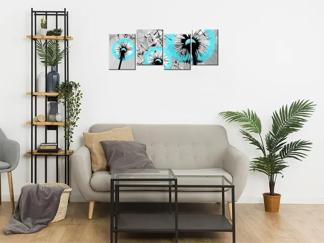 Úvod » Obrazy » Obrazy s hodinami » Obraz s hodinami Púpavy v jemnej tyrkysovej farbe