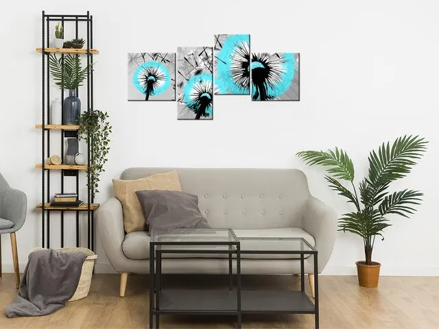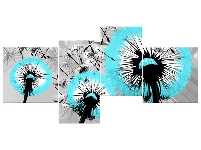 Úvod » Obrazy » Obrazy s hodinami » Obraz s hodinami Púpavy v jemnej tyrkysovej farbe