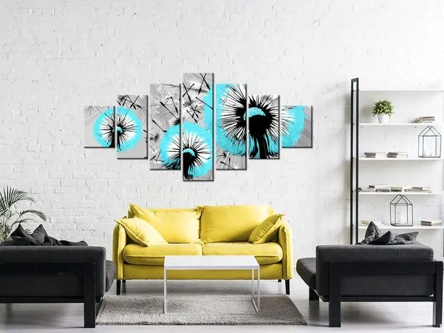 Úvod » Obrazy » Obrazy s hodinami » Obraz s hodinami Púpavy v jemnej tyrkysovej farbe