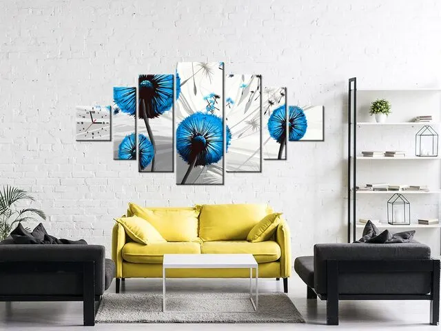Úvod » Obrazy » Obrazy s hodinami » Obraz s hodinami Púpavy v modrej