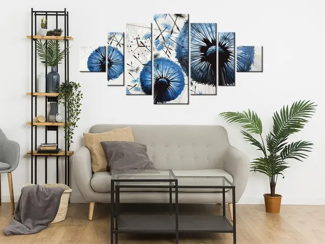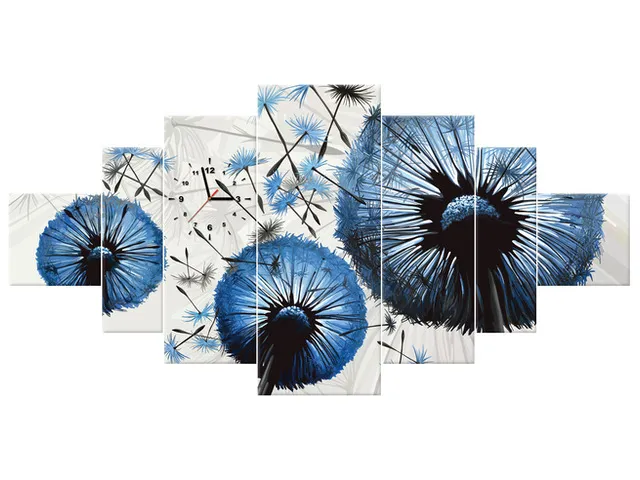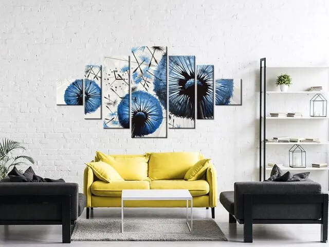 Úvod » Obrazy » Obrazy s hodinami » Obraz s hodinami Púpavy v modrej farbe