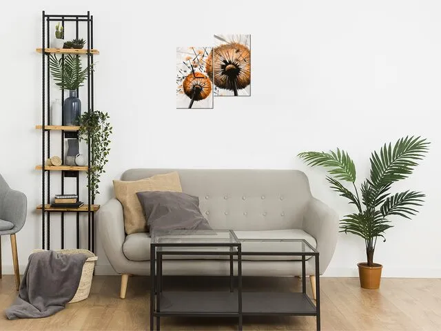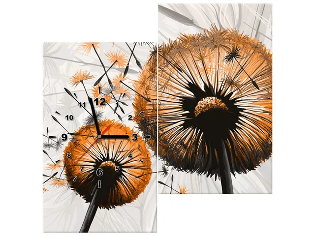 Úvod » Obrazy » Obrazy s hodinami » Obraz s hodinami Púpavy v oranžovej farbe