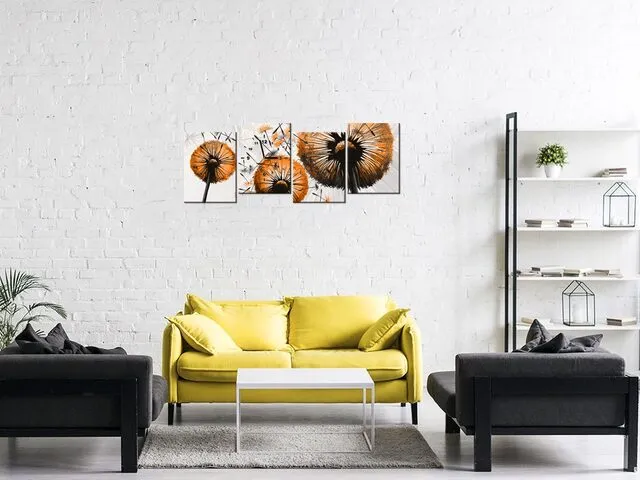 Úvod » Obrazy » Obrazy s hodinami » Obraz s hodinami Púpavy v oranžovej farbe
