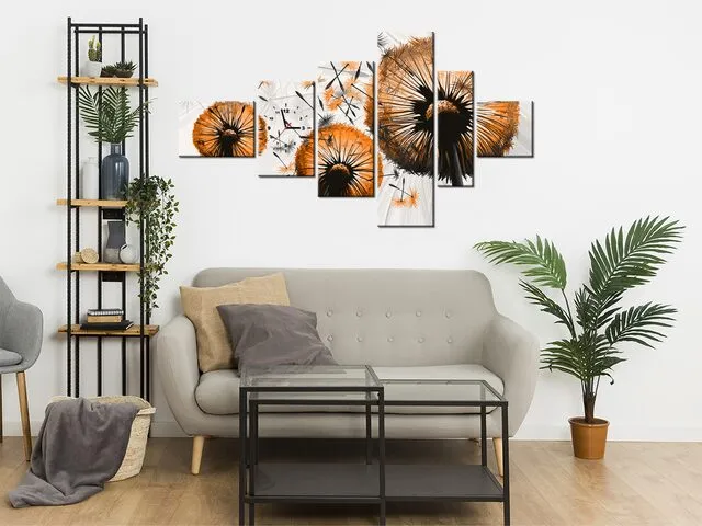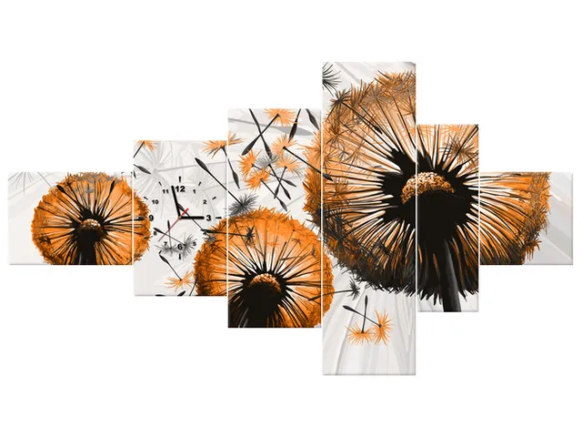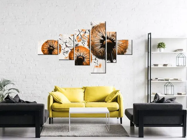Úvod » Obrazy » Obrazy s hodinami » Obraz s hodinami Púpavy v oranžovej farbe