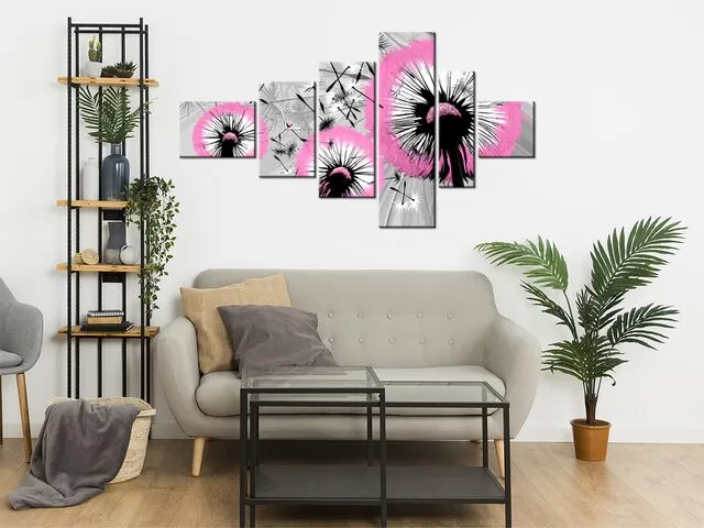 Úvod » Obrazy » Obrazy s hodinami » Obraz s hodinami Púpavy v ružovej