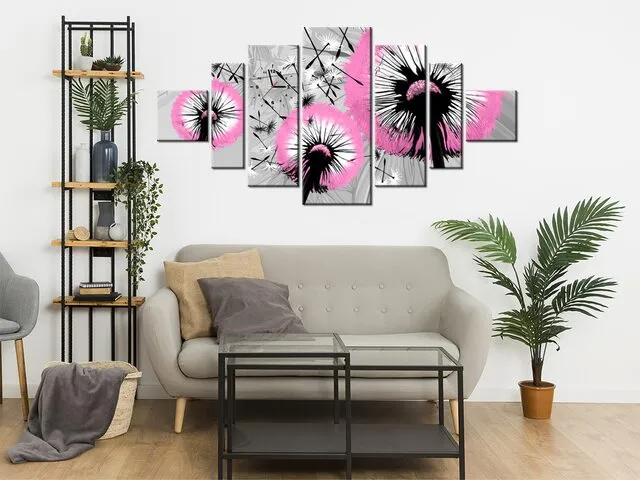 Úvod » Obrazy » Obrazy s hodinami » Obraz s hodinami Púpavy v ružovej