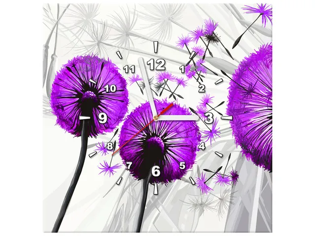 Úvod » Obrazy » Obrazy s hodinami » Obraz s hodinami Púpavy vo fialovej farbe