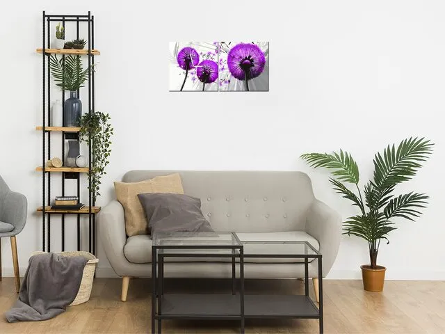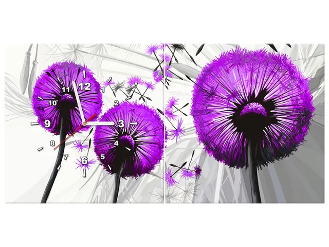 Úvod » Obrazy » Obrazy s hodinami » Obraz s hodinami Púpavy vo fialovej farbe