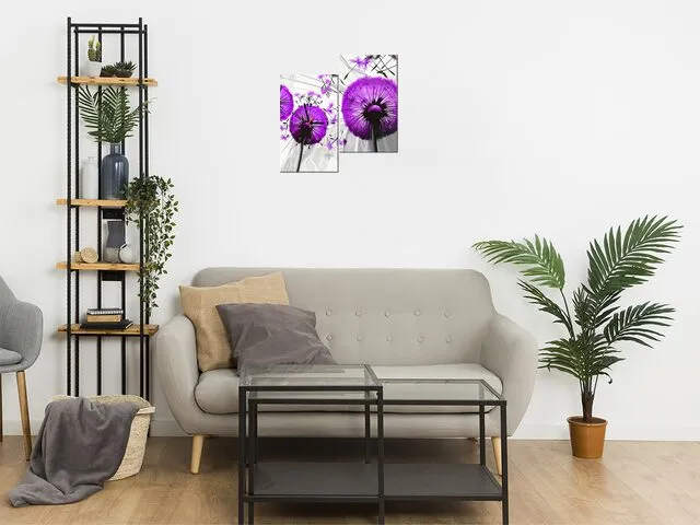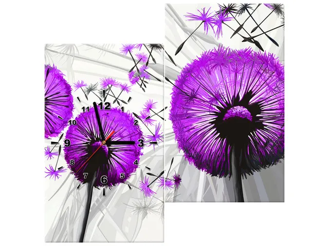 Úvod » Obrazy » Obrazy s hodinami » Obraz s hodinami Púpavy vo fialovej farbe