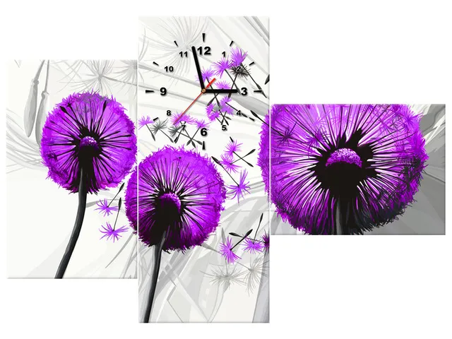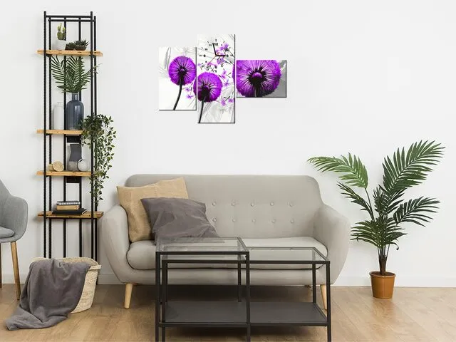 Úvod » Obrazy » Obrazy s hodinami » Obraz s hodinami Púpavy vo fialovej farbe