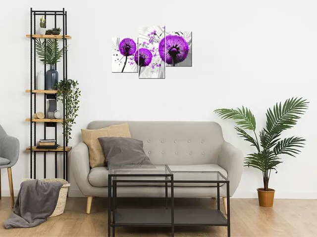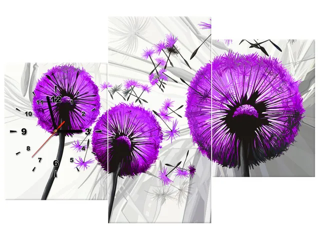 Úvod » Obrazy » Obrazy s hodinami » Obraz s hodinami Púpavy vo fialovej farbe