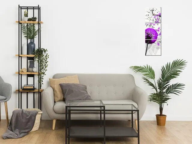 Barion Pixel Obraz s hodinami Púpavy vo fialovej farbe