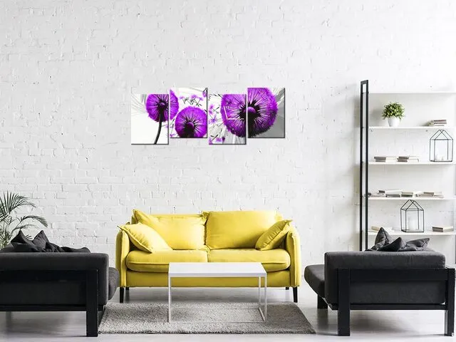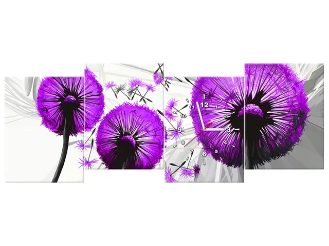 Úvod » Obrazy » Obrazy s hodinami » Obraz s hodinami Púpavy vo fialovej farbe