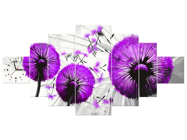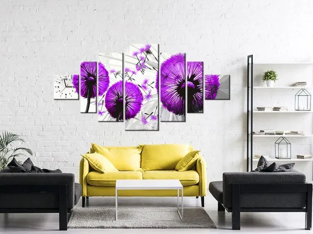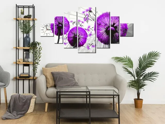 Úvod » Obrazy » Obrazy s hodinami » Obraz s hodinami Púpavy vo fialovej farbe