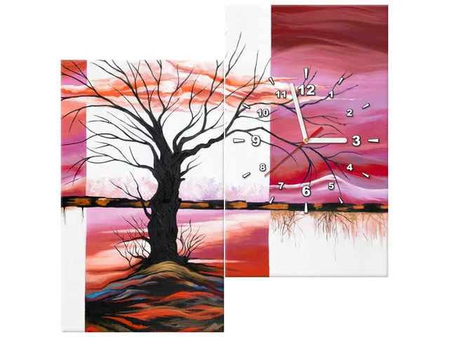 Úvod » Obrazy » Obrazy s hodinami » Obraz s hodinami Rozvetvený strom pri západe slnka
