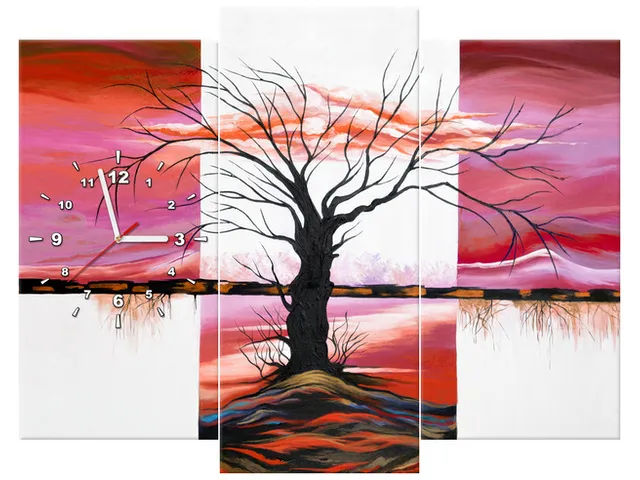 Úvod » Obrazy » Obrazy s hodinami » Obraz s hodinami Rozvetvený strom pri západe slnka