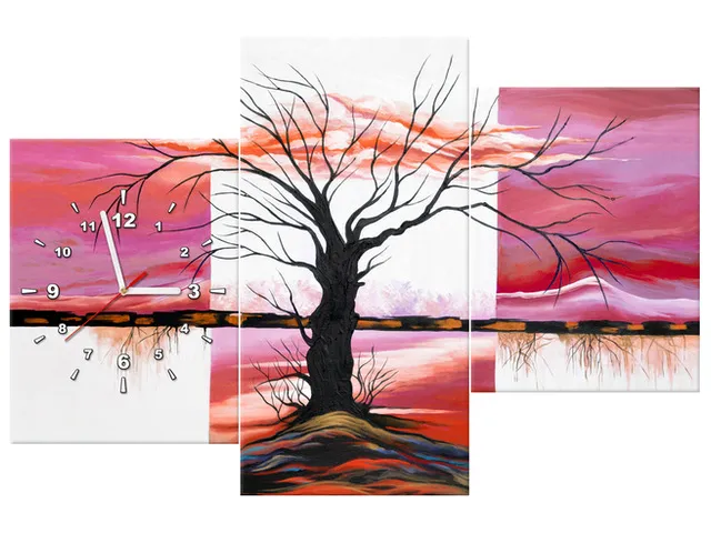 Úvod » Obrazy » Obrazy s hodinami » Obraz s hodinami Rozvetvený strom pri západe slnka