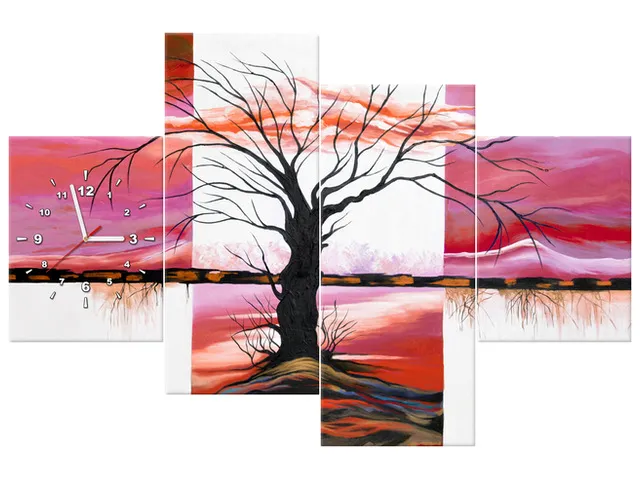 Úvod » Obrazy » Obrazy s hodinami » Obraz s hodinami Rozvetvený strom pri západe slnka