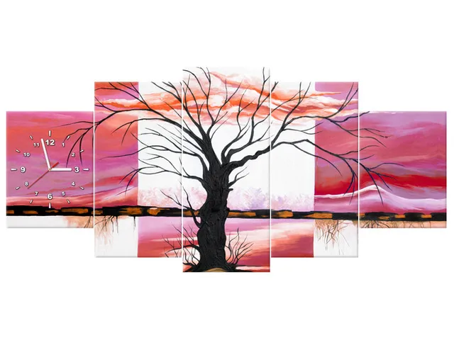 Úvod » Obrazy » Obrazy s hodinami » Obraz s hodinami Rozvetvený strom pri západe slnka