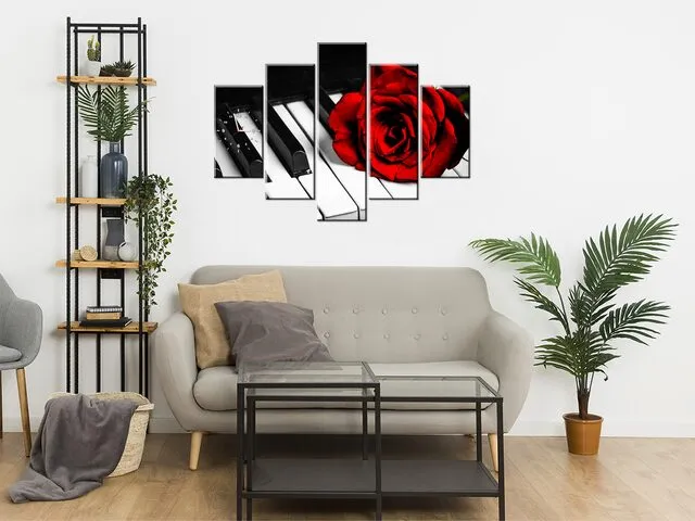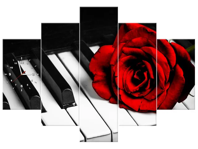 Úvod » Obrazy » Obrazy s hodinami » Obraz s hodinami Ruža na piáne