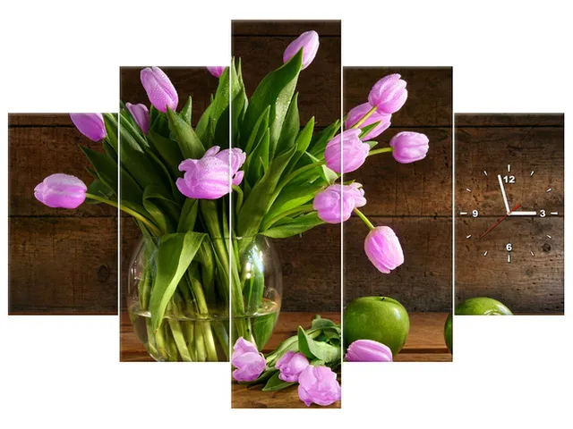 Úvod » Obrazy » Obrazy s hodinami » Obraz s hodinami Ružové tulipány