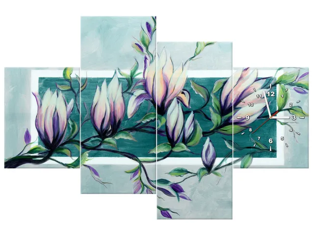 Úvod » Obrazy » Obrazy s hodinami » Obraz s hodinami Sladká magnólia v jasno zelenej