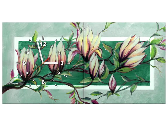 Úvod » Obrazy » Obrazy s hodinami » Obraz s hodinami Sladká magnólia v zelenej farbe