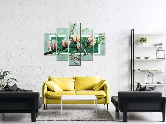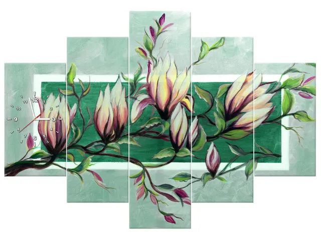 Úvod » Obrazy » Obrazy s hodinami » Obraz s hodinami Sladká magnólia v zelenej farbe