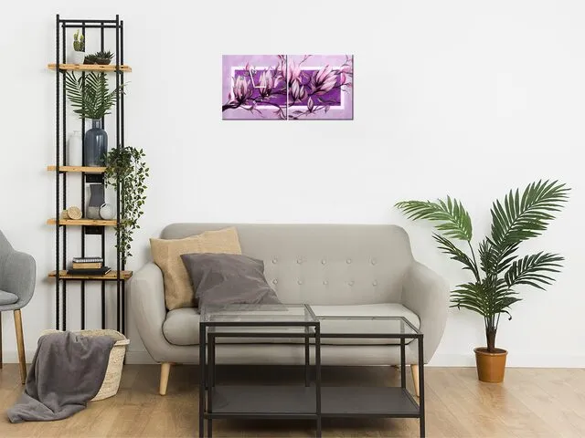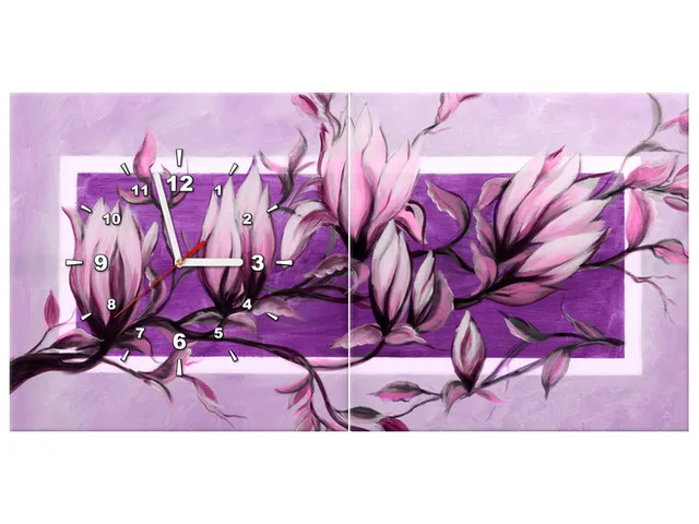 Úvod » Obrazy » Obrazy s hodinami » Obraz s hodinami Sladká magnólia vo fialovej