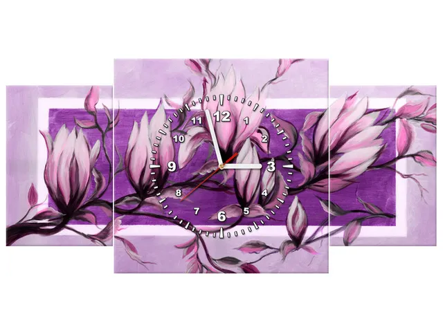 Úvod » Obrazy » Obrazy s hodinami » Obraz s hodinami Sladká magnólia vo fialovej