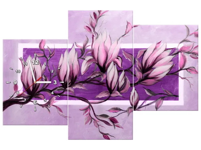 Úvod » Obrazy » Obrazy s hodinami » Obraz s hodinami Sladká magnólia vo fialovej