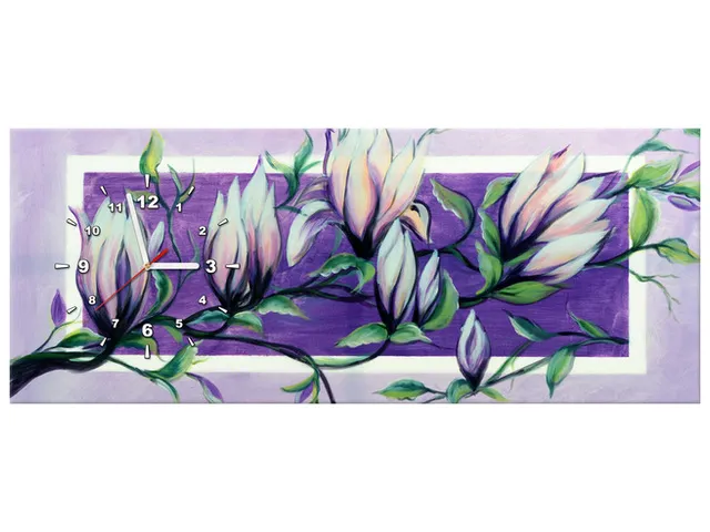 Úvod » Obrazy » Obrazy s hodinami » Obraz s hodinami Sladká magnólia vo fialovej