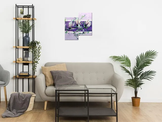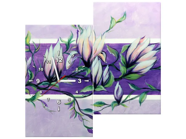 Úvod » Obrazy » Obrazy s hodinami » Obraz s hodinami Sladká magnólia vo fialovej