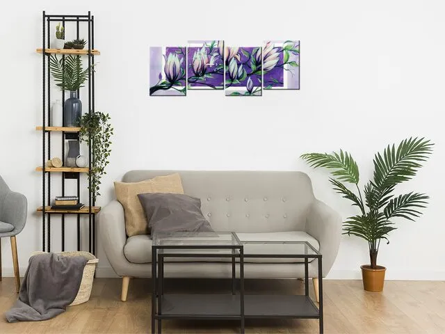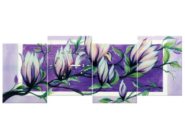 Úvod » Obrazy » Obrazy s hodinami » Obraz s hodinami Sladká magnólia vo fialovej