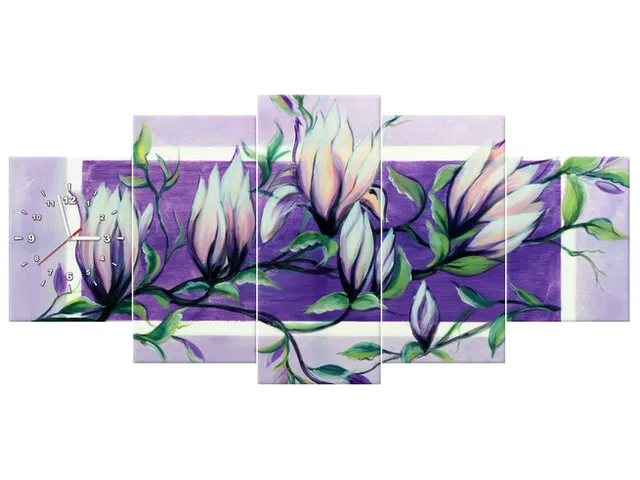 Úvod » Obrazy » Obrazy s hodinami » Obraz s hodinami Sladká magnólia vo fialovej