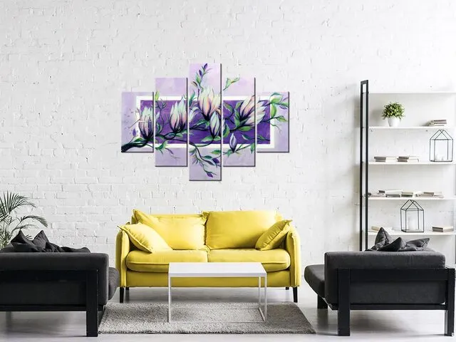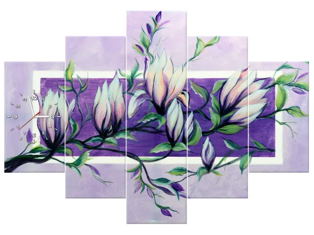 Úvod » Obrazy » Obrazy s hodinami » Obraz s hodinami Sladká magnólia vo fialovej