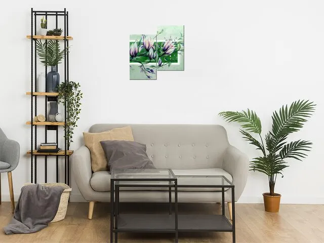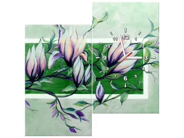 Úvod » Obrazy » Obrazy s hodinami » Obraz s hodinami Sladkosť magnólie v zelenej