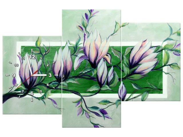 Úvod » Obrazy » Obrazy s hodinami » Obraz s hodinami Sladkosť magnólie v zelenej