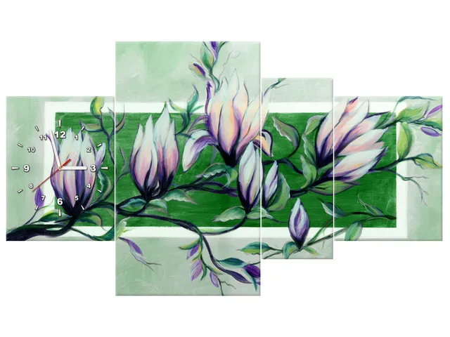 Úvod » Obrazy » Obrazy s hodinami » Obraz s hodinami Sladkosť magnólie v zelenej