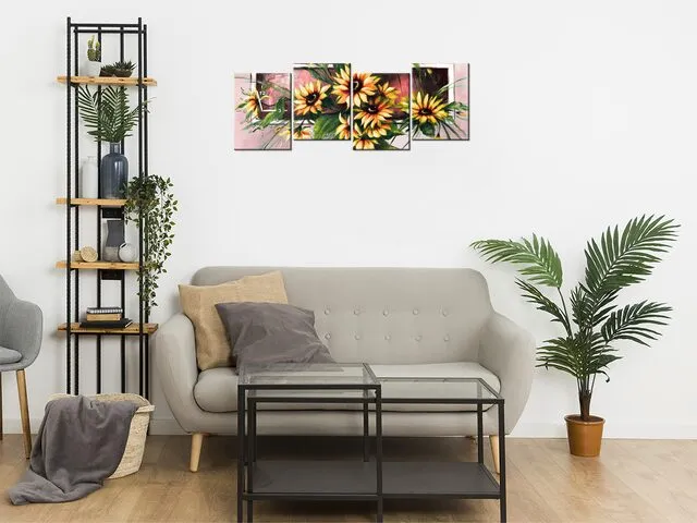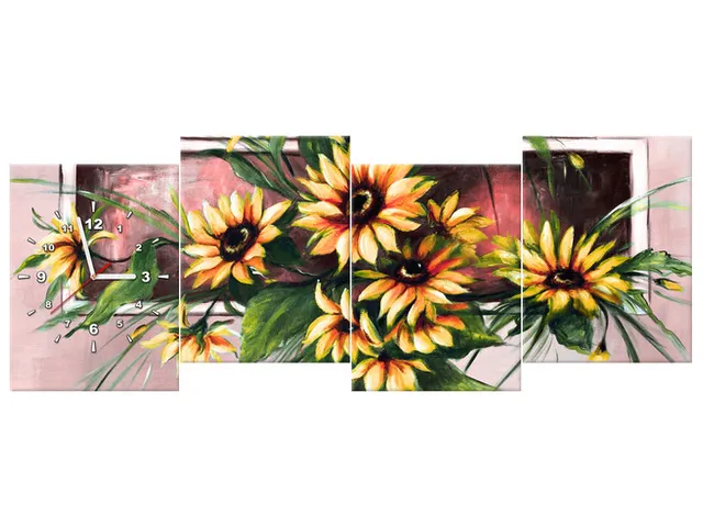 Úvod » Obrazy » Obrazy s hodinami » Obraz s hodinami Slnečnice v korálovej farbe