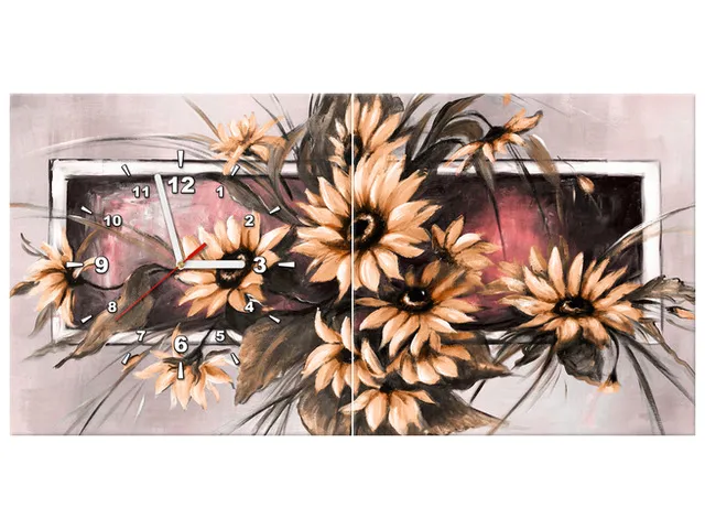 Úvod » Obrazy » Obrazy s hodinami » Obraz s hodinami Slnečnice v práškovo ružovej farbe