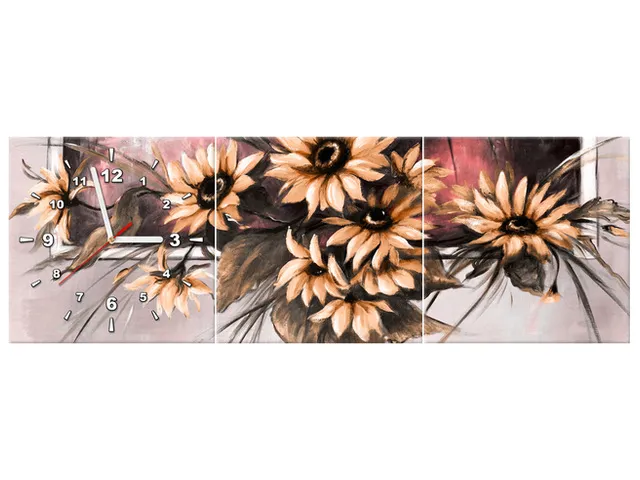 Úvod » Obrazy » Obrazy s hodinami » Obraz s hodinami Slnečnice v práškovo ružovej farbe
