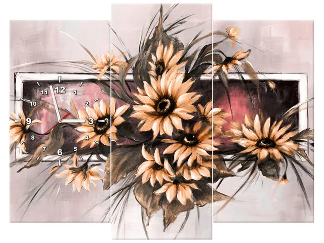 Úvod » Obrazy » Obrazy s hodinami » Obraz s hodinami Slnečnice v práškovo ružovej farbe