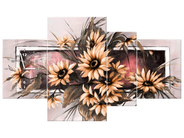 Úvod » Obrazy » Obrazy s hodinami » Obraz s hodinami Slnečnice v práškovo ružovej farbe