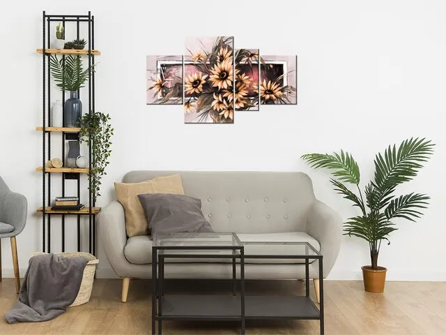 Obraz s hodinami Slnečnice v práškovo ružovej farbe