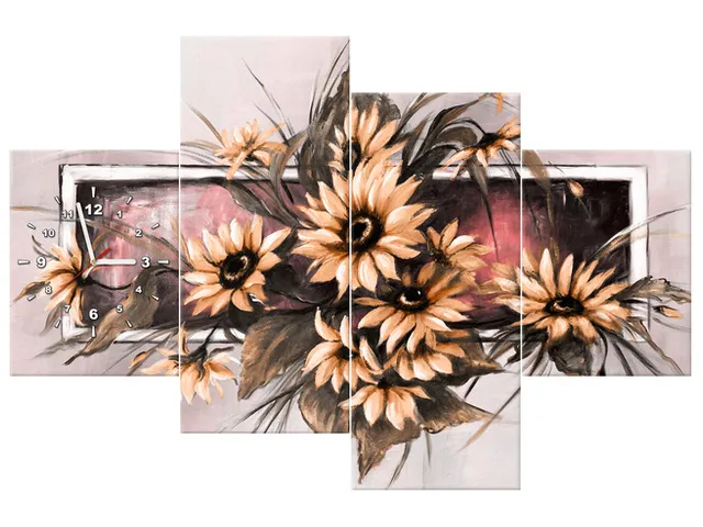 Úvod » Obrazy » Obrazy s hodinami » Obraz s hodinami Slnečnice v práškovo ružovej farbe