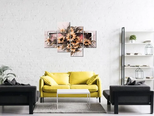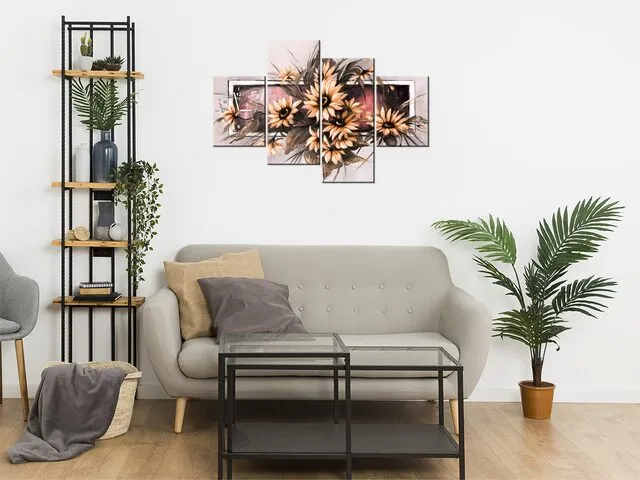 Obraz s hodinami Slnečnice v práškovo ružovej farbe